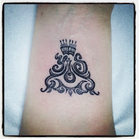 Bem, dizia eu, fui às nuvens!! Pois, e lá fiquei durante algum tempo. De lá fui vendo as novidades que iam gotejando. Eis que se fica a conhecer o logo/brasão do CD. Ah, é lindo, mesmo … ai, e eu que sempre quis fazer uma tattoo … olha, isto fica bem na pele, fica mesmo bem, faço, não faço … mas eu quero recordar para sempre o meu nome no CD!! FAÇO!